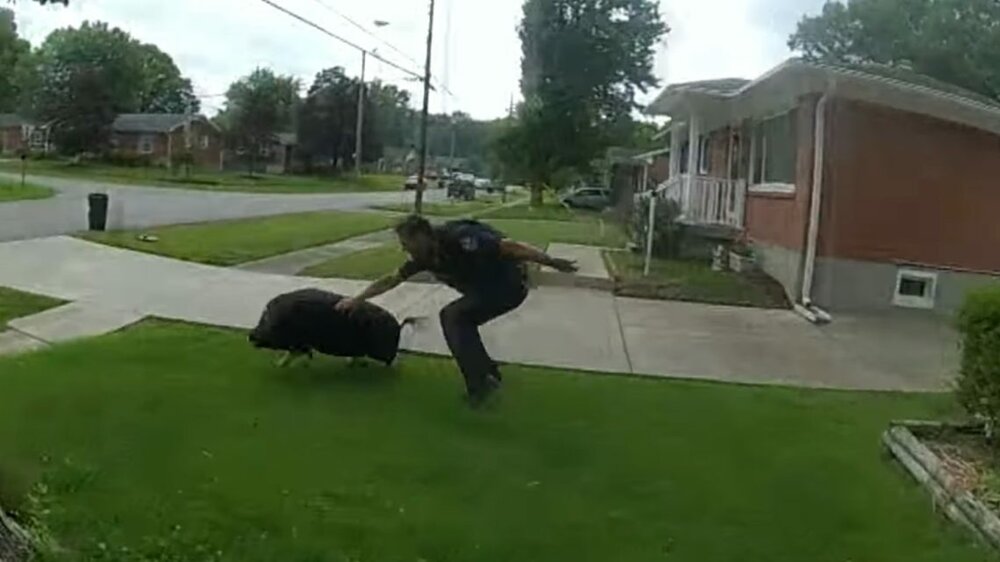 Vígjátékba illő videón az elszabadult disznót kergető rendőrök